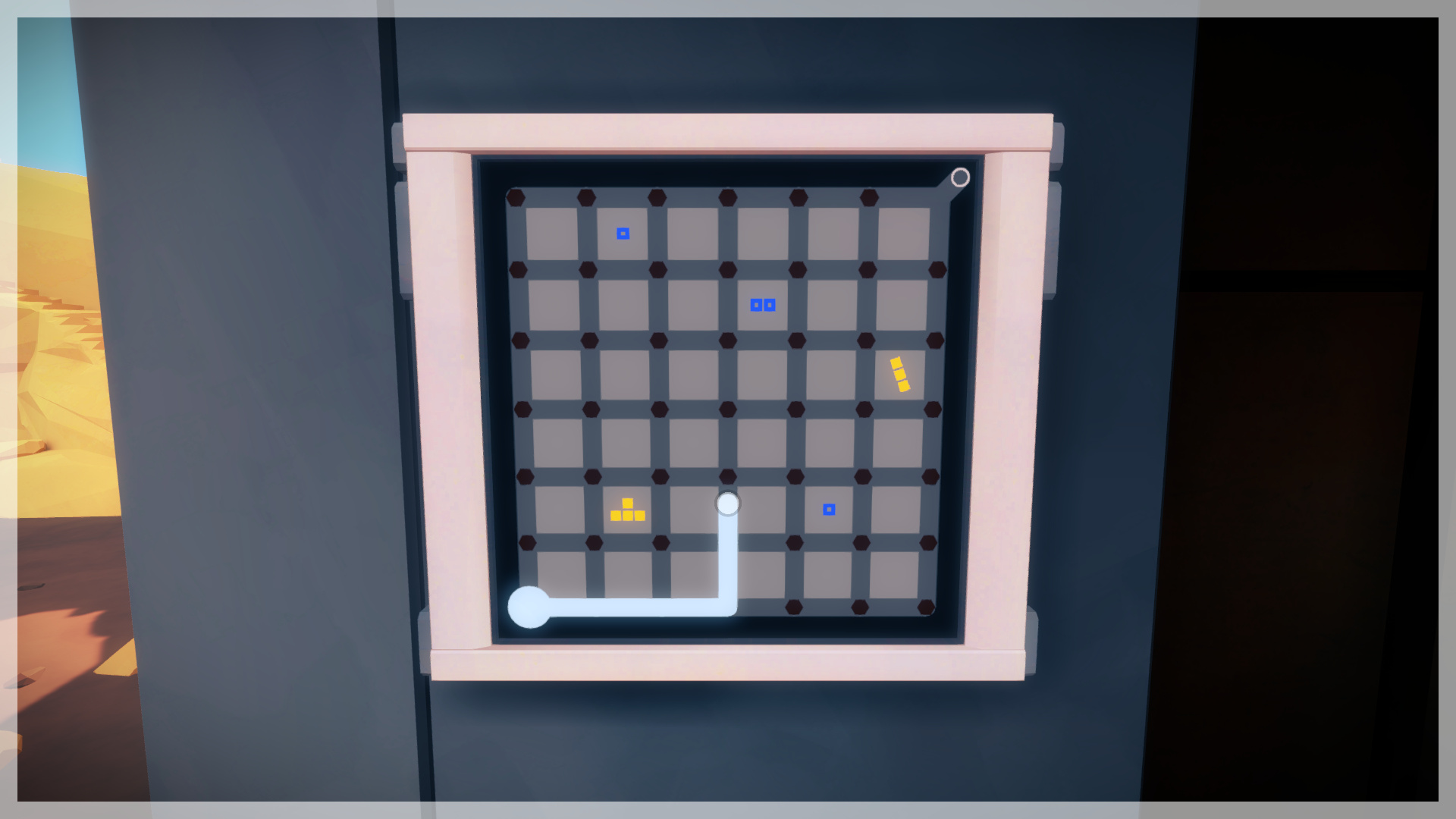 The Witness is a puzzle game. At the core there are logic puzzles, with a logical difficulty akin to Minesweeper or Soduku. The difficulty lies more in discovering the rules for these puzzles than for solving the puzzles themselves. This is both the blessing and the curse of these puzzles. You will have epiphany moments while learning the rules that stun and amuse you… It’ll occasionally make you feel like a genius, however, the downside is that once you know the rules, the actual solving can feel like you are being used as a permutation machine.